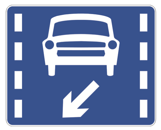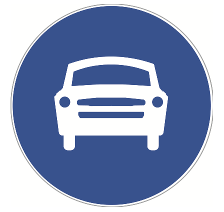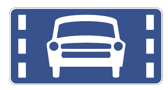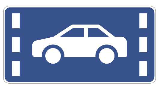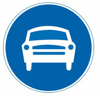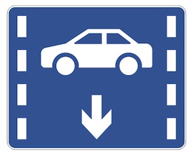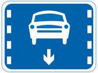 表示该车道仅供机动车通行,机动车车道标志设置在车道正上方时 ,向下的箭头可以省略,在标志无法正对车道时可调整箭头方向指向车道。