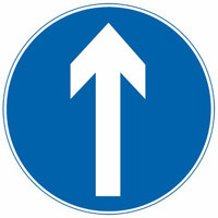 表示前方路口一切车辆只准直行,注意是圆形图,如果是长方形图,则是直行单行路。