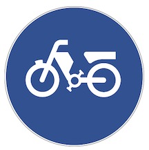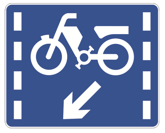 表示该车道仅供电动自行车通行,标志设置在车道正上方时 ,向下的箭头可以省略,在标志无法正对车道时可调整箭头方向指向车道。