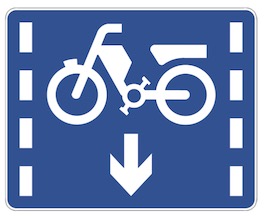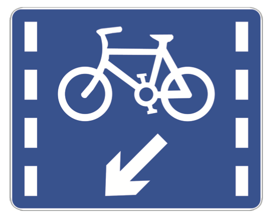 表示该车道仅供非机动车通行,标志设置在车道正上方时 ,向下的箭头可以省略,在标志无法正对车道时可调整箭头方向指向车道。