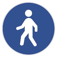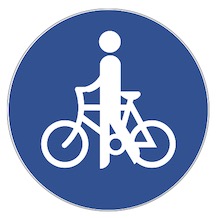 表示该道路仅供非机动车推行,不准骑行,一般设在天桥、地下通道等禁止骑行的路段人口处。