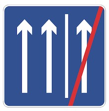 表示该处硬路肩允许车辆通行,该图表示硬路肩允许行驶路段即将结束,车辆应尽快合流,设在合流点前适当位置。