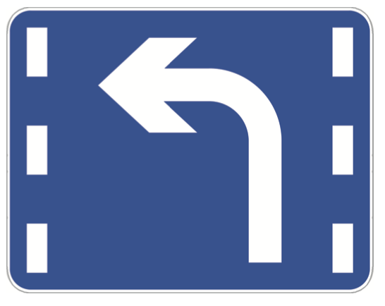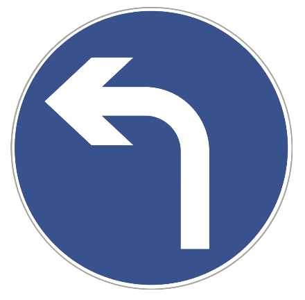 表示向左转向道路为单向通行(向左单行路),驶入单行路的机动车应依标志指示方向通行。