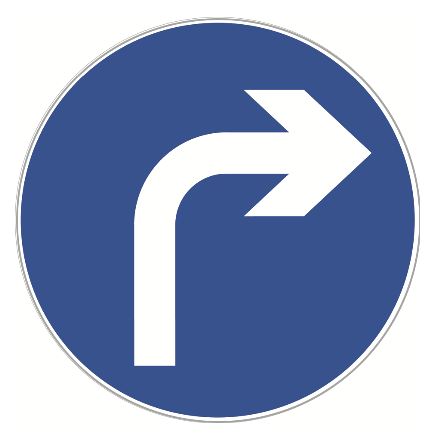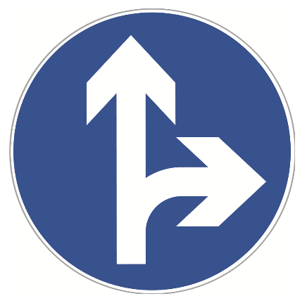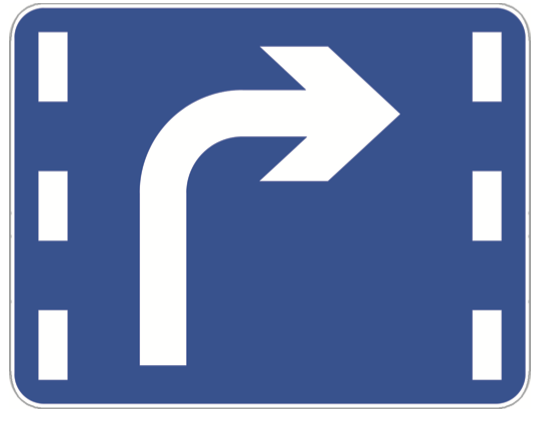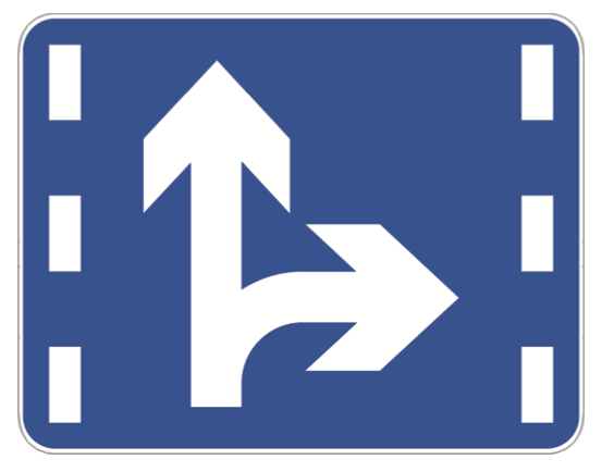 表示一切车辆只准直行和向右转弯,一般设在车辆应直行和向右转弯的路口前。