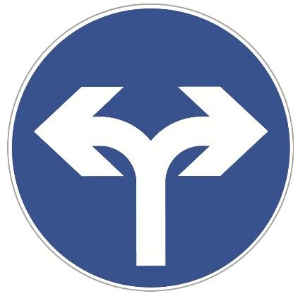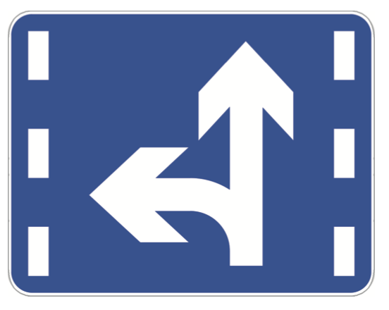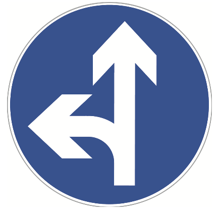 表示一切车辆只准直行和向左转弯,一般设在车辆应直行和向左转弯的路口前。