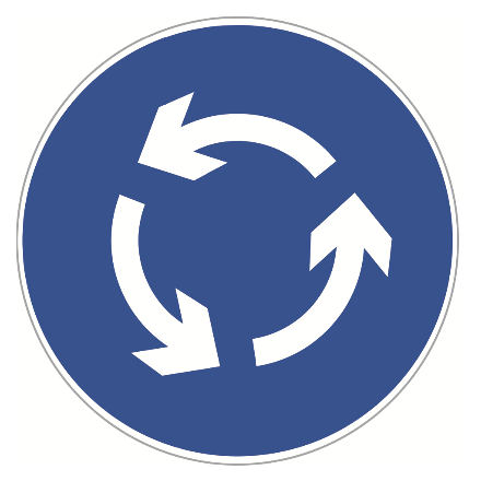 表示一切车辆只准靠右环行,环内车辆具有优先权,车辆进人环岛时应让环内车辆优先通行。