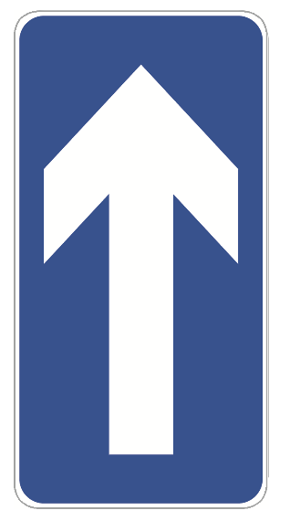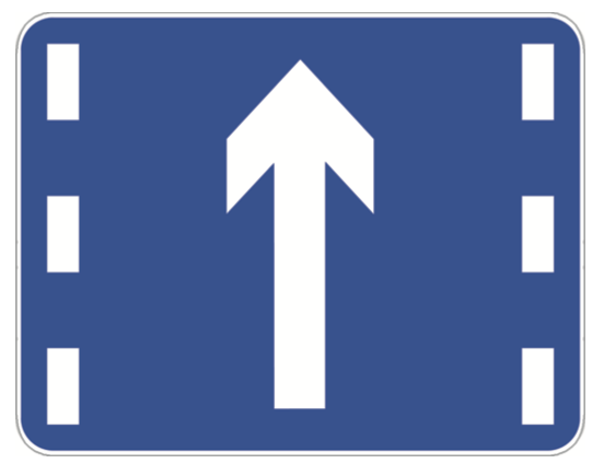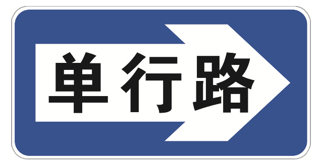 表示该道路为单向通行(直行单行路),驶入单行路的机动车应依标志指示方向通行。