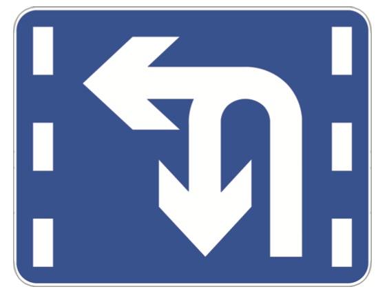 表示交叉口的车道行驶方向,所指示的车道为掉头和左转合用车道。