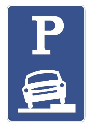 表示机动车允许停放的区域,需要和停车位标线配合使用。有车种专用、时段或时长限制时,可用辅助标志表示。 此图表示按图示占用部分人行道边缘停放机动车。