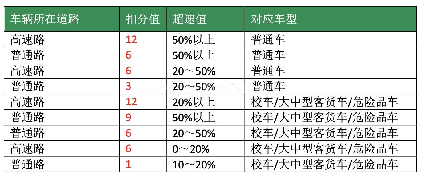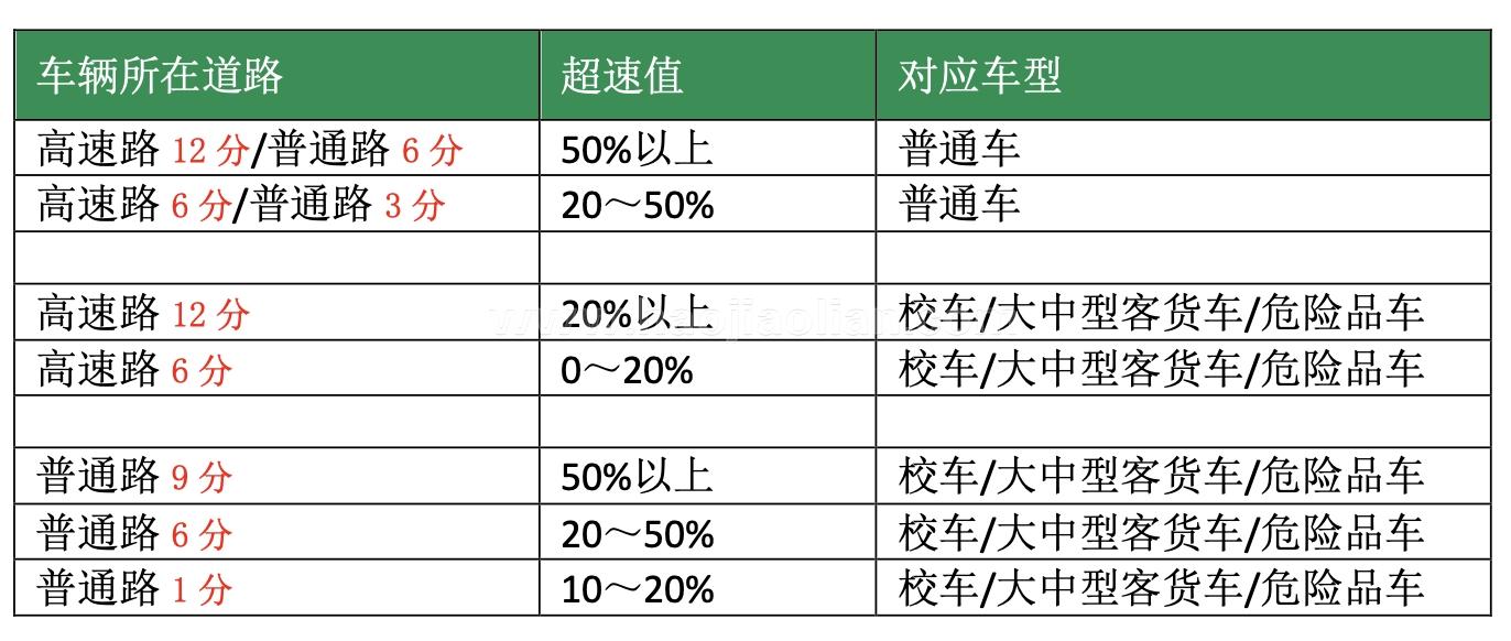 如下是跟超速有关的新规,以图表形式展示出来,方便大家记忆,另我们约定如下:
